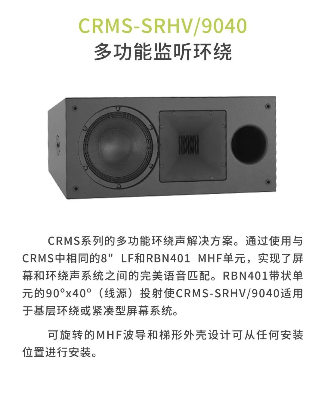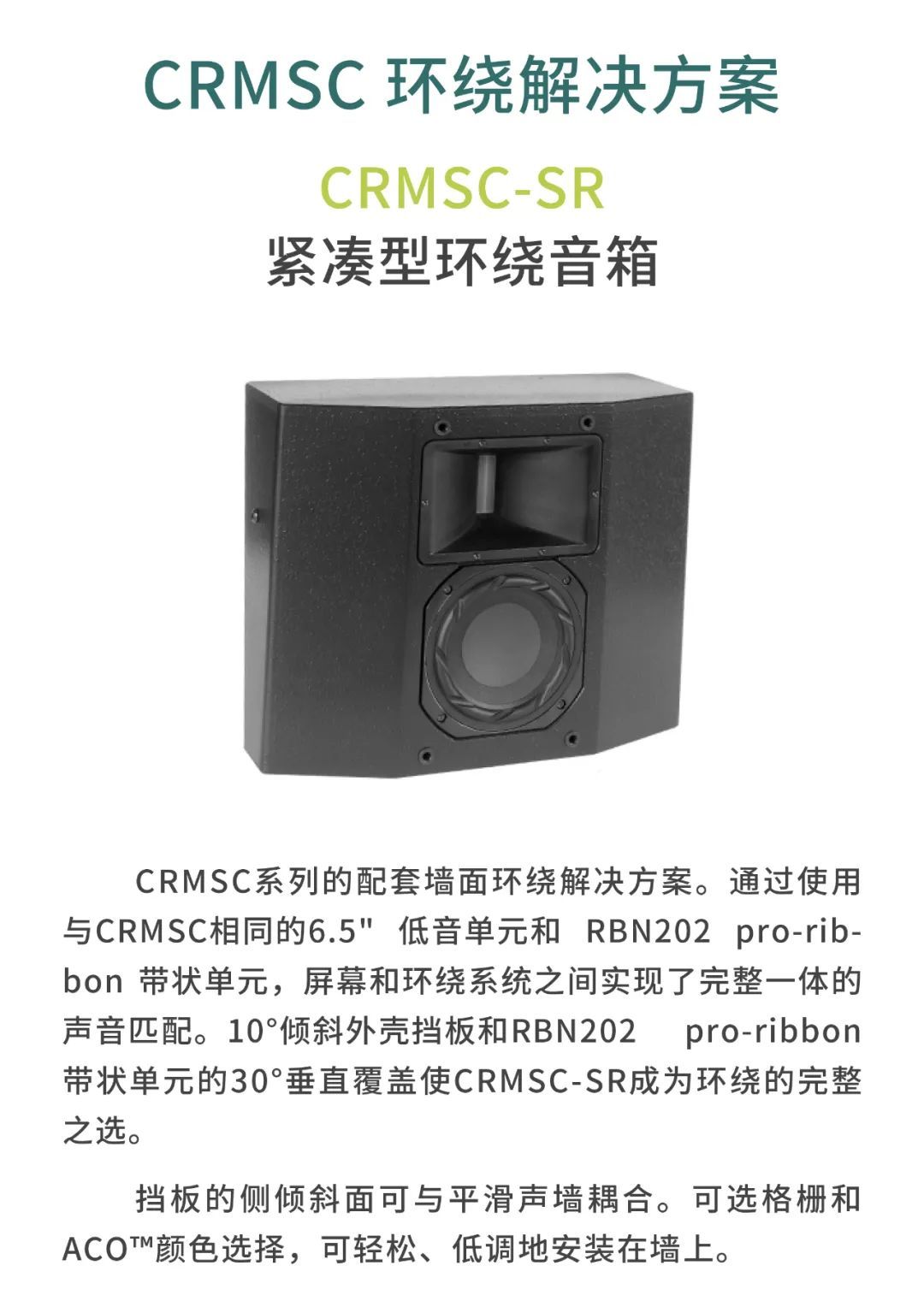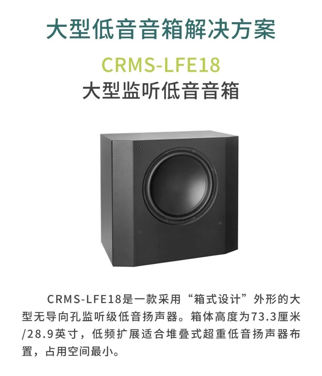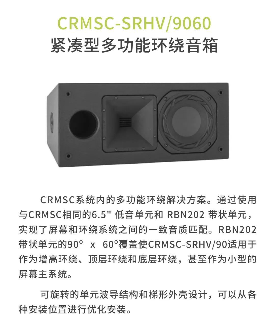 較小的審片室使用CR1影院音箱,包括1個12寸低頻單元以及1個6.5寸中頻單元,音箱厚度僅為18厘米。另外,審片室還配置了CCS8二分頻環繞立體聲音箱以及1只BF181i低音炮。