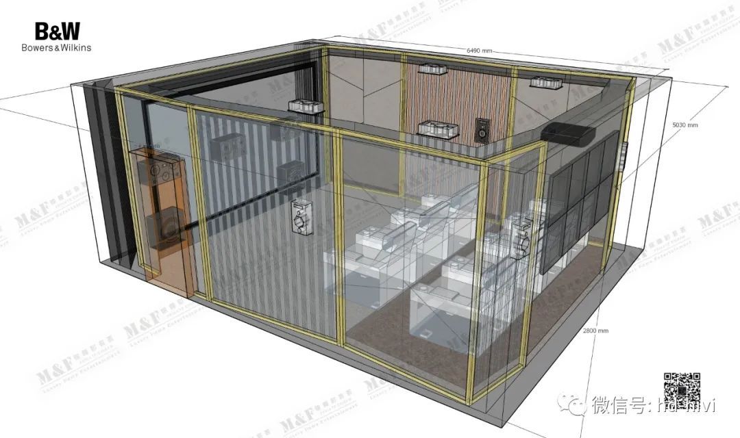 這是一套專門針對高端私家影院而研發(fā)影音系統(tǒng),且可高度個性定制化設(shè)計,應(yīng)用于中型家庭影院空間并且提供高效率和高動態(tài)的音頻輸出。能提供HiFi音質(zhì)以及完美的清晰度,讓觀眾長時間觀看電影都不會出現(xiàn)聽覺疲勞。